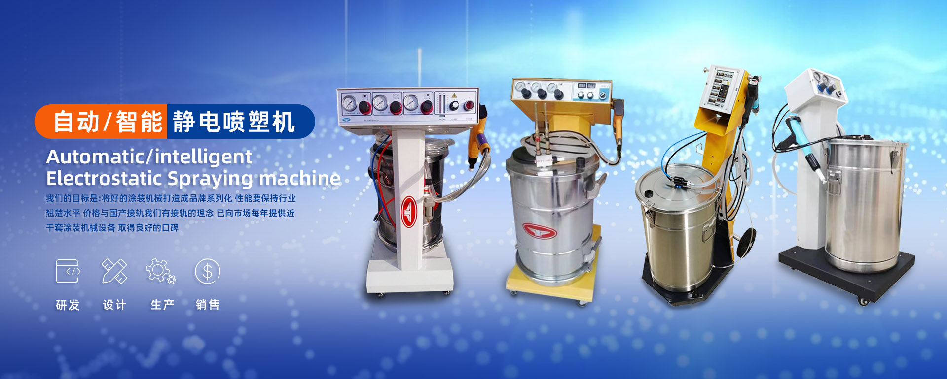 專業研發、設計、生產、銷售靜電噴塑機、自動靜電噴塑機、智能靜電噴塑機